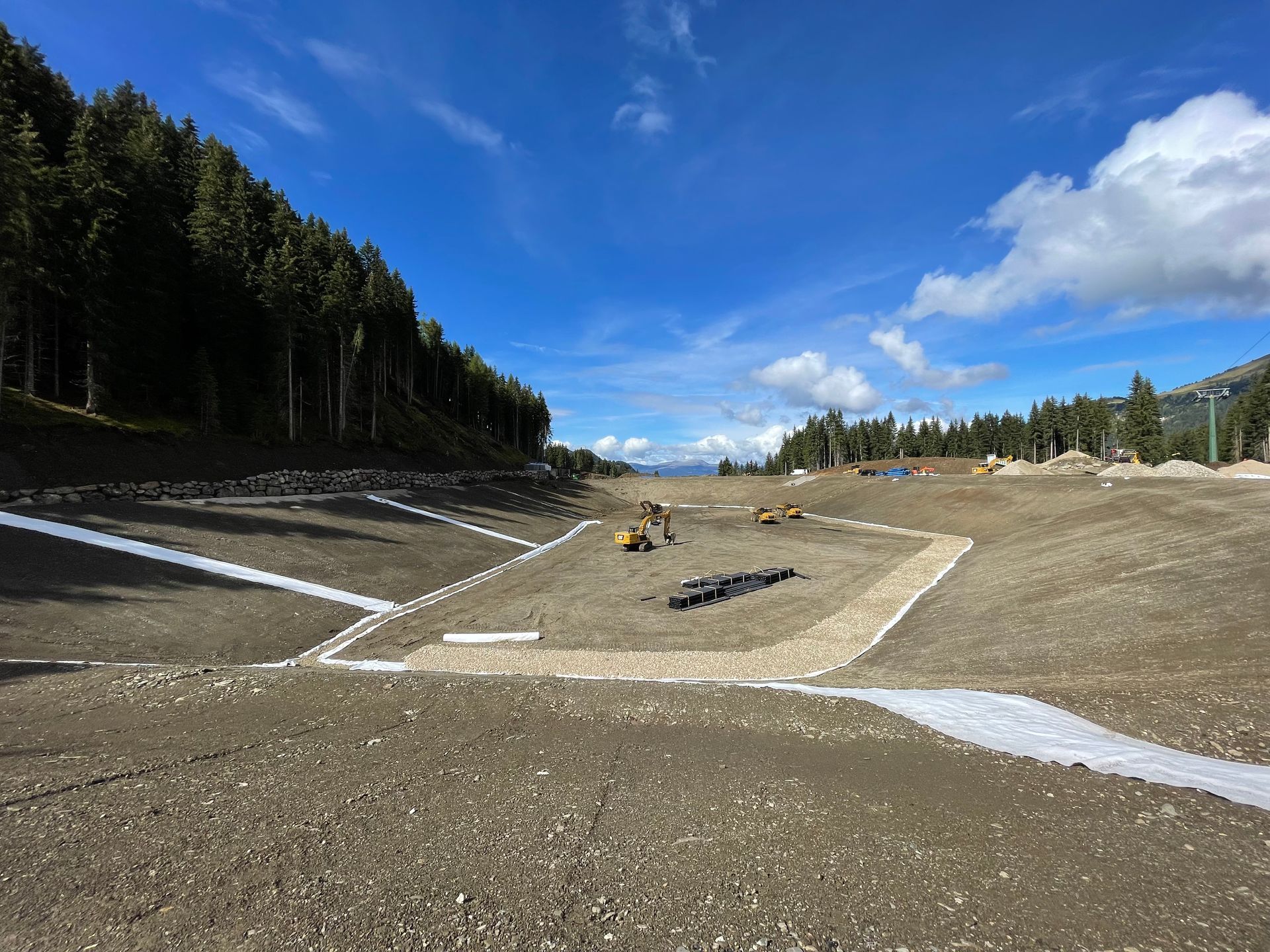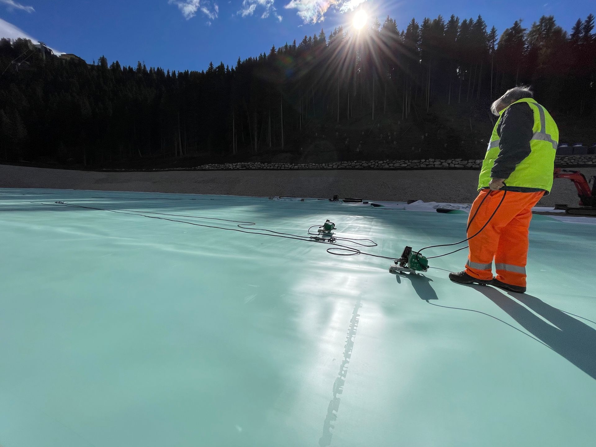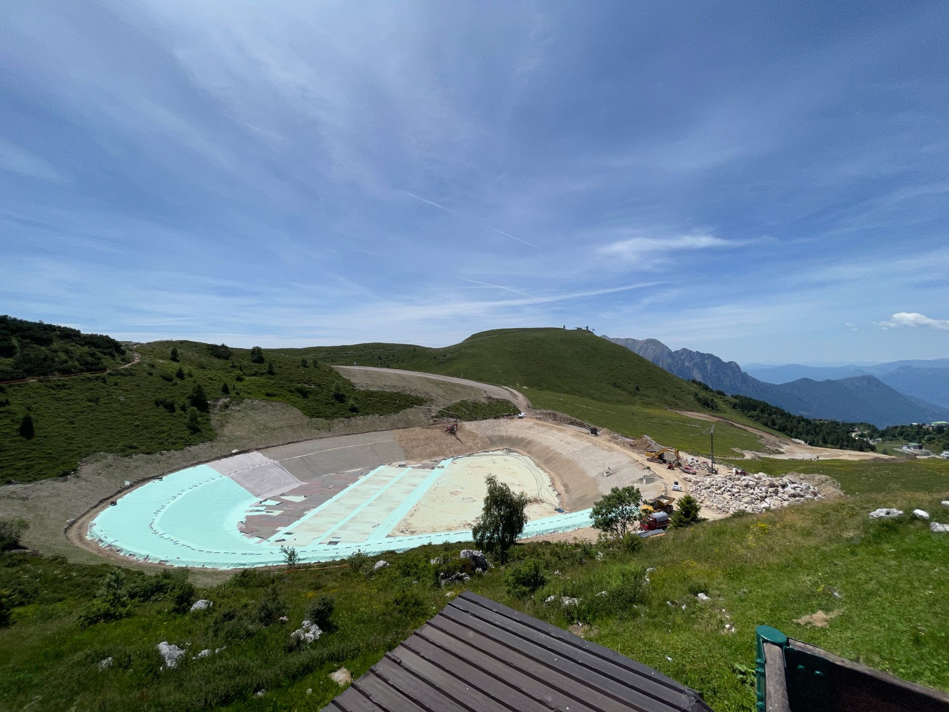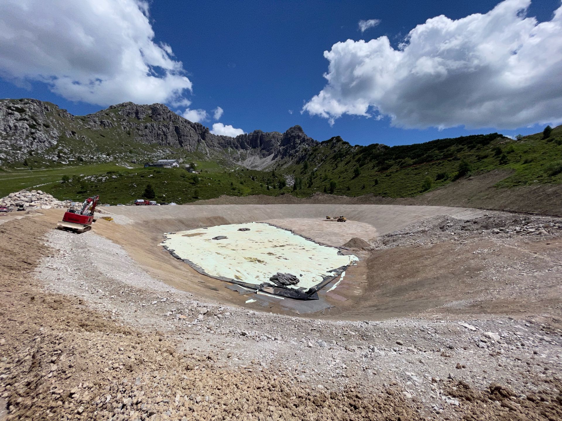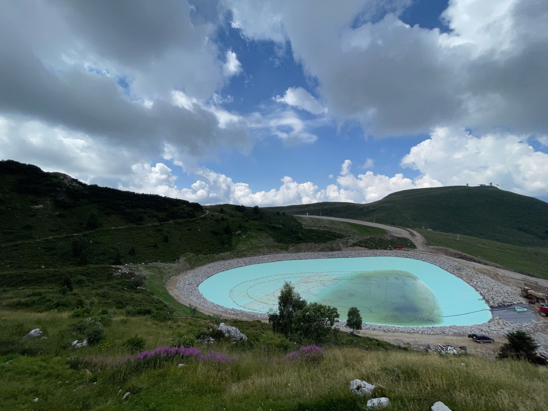 L’intervento ha riguardato la realizzazione del un manto impermeabile di un bacino per l'innevamento artificiale ed antincendio.